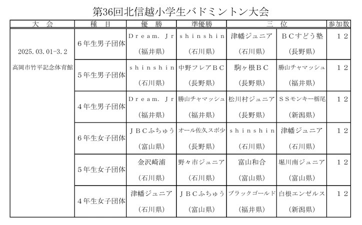 ※前年度(富山県大会)の優勝チームは、優勝カップを大会当日に本部まで返還するようお願いします。